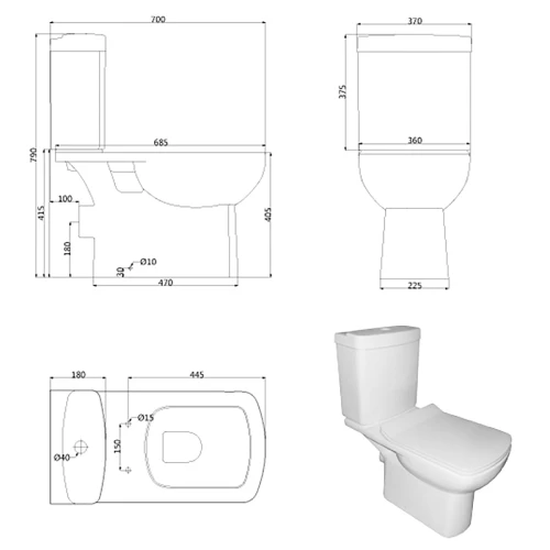 Унитаз-компакт Creo Ceramique Tours TO1002N+TO1003N+TO1001N