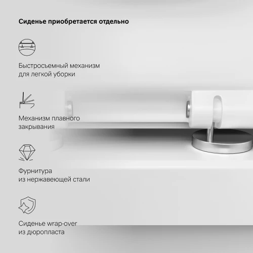 Выверенный геометрический дизайн: идеально ровные поверхности в сочетании с четкими гранями. Скрытые крепления, скрытый фановый выход и идеальное прилегание к стене обеспечат эстетическую чистоту дизайна и лёгкость в уходе за керамикой. Эффективный душевой смыв обеспечивает полноценное омывание чаши унитаза.