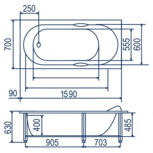 Акриловая ванна Bach Лаура 160х70 на каркасе