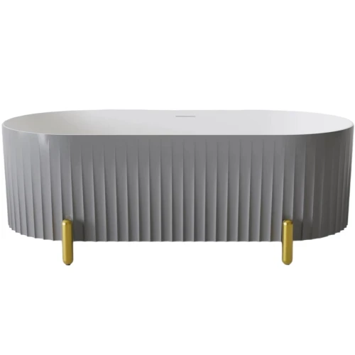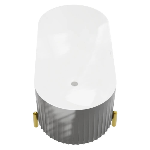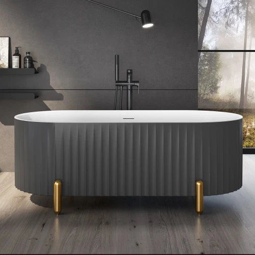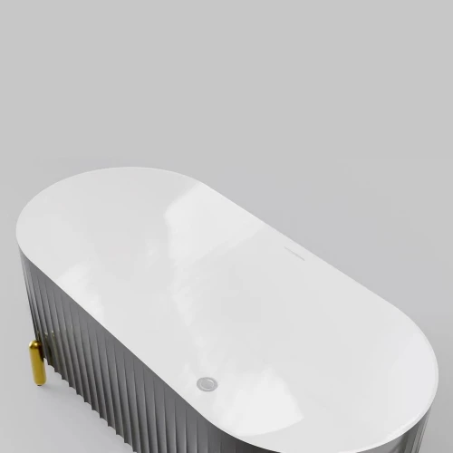 Серая матовая поверхность ванны с дизайнерским решением на внешней части придает ей особый шарм и изысканность. Брошированные ножки золотого цвета добавляют ванне элегантности и роскоши. Ванна идеально подойдет для любой ванной комнаты и станет центром внимания благодаря своему уникальному дизайну и качеству исполнения.