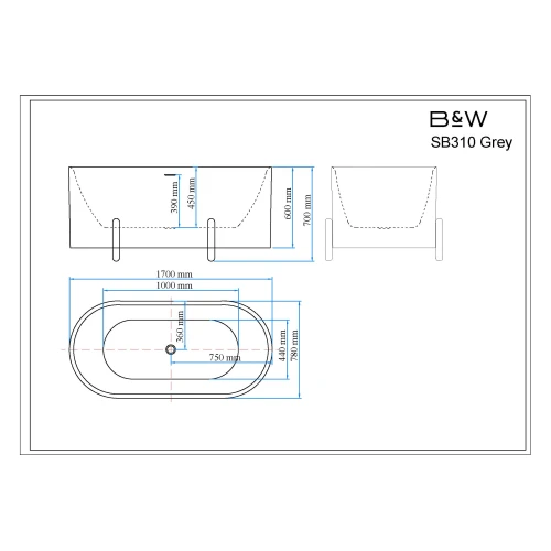 Отдельностоящая ванна SB310 Grey бренда Black&White является идеальным выбором для тех, кто ценит комфорт, стиль и элегантность в интерьере. Эта ванна имеет размер 1700 x 780 x 700 мм и объем 260 литров, что позволяет наслаждаться водными процедурами, не переживая о нехватке места. Вес ванны составляет всего 45 килограмм, что облегчает процесс установки в любом месте и перемещения при необходимости.