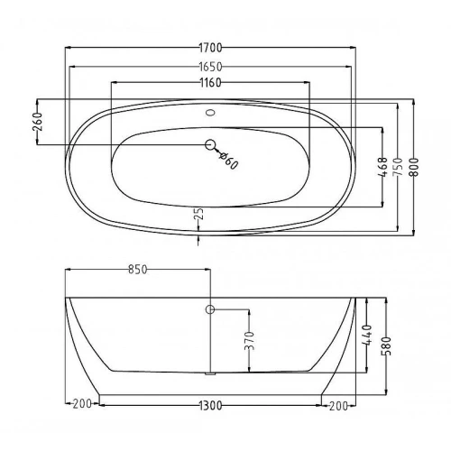 Акриловая ванна Esbano Rome 170х80