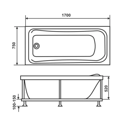 Акриловая ванна Eurolux Akra 170х75