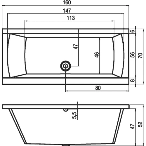 Акриловая ванна RIHO Julia 160x70 без гидромассажа B024001005