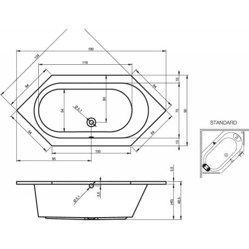 Акриловая ванна RIHO Kansas 190x90 без гидромассажа B035001005