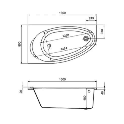 Акриловая ванна Roca Corfu 160x90 L 248573000