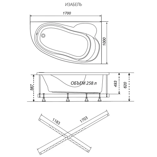 Акриловая ванна Triton Изабель 170х100 L