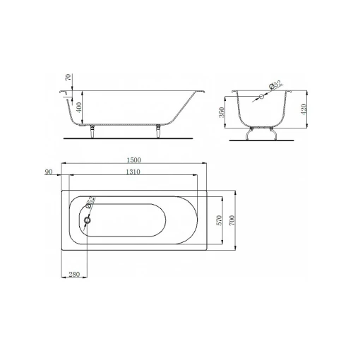 Чугунная ванна Castalia 150x70 с ручками