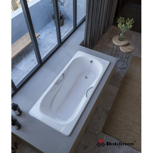 Чугунная ванна GOLDMAN Donni 180х80. Плавные обводы и необычная внутренняя форма с подлокотниками является отличительной особенностью чугунных ванн коллекции Goldman Donni. Такая форма чаши придает данной модели особую элегантность и позволяет получить максимум комфорта в процессе эксплуатации, а необычный дизайн придется по вкусу самому искушенному покупателю.