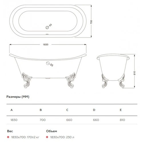 Чугунная ванна GOLDMAN Glossy 183х70. Чугунная ванна Glossy обладает изящной формой с двумя изголовьями, придающей ей лаконичный внешний вид, а львиные - лапы величие и основательность. Отличный выбор для истинных ценителей стиля и комфорта.