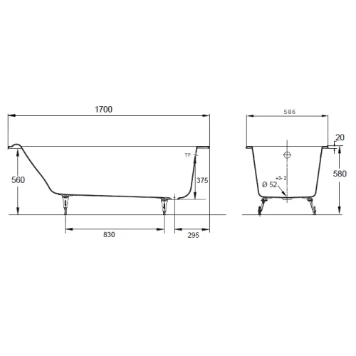 Чугунная ванна Jacob Delafon Parallel 170x70 E2947-S без антискользящего покрытия