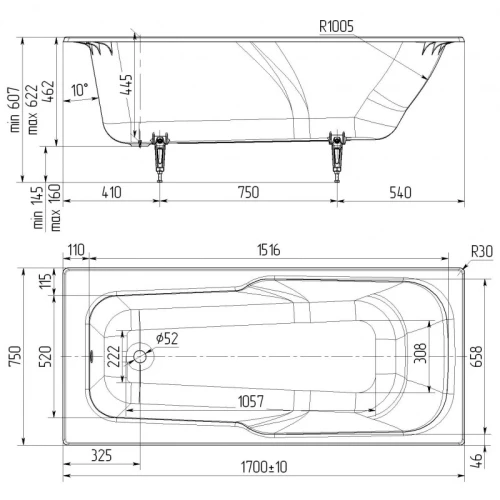 Классический дизайн прямоугольной ванны Эврика 170х75 российской компании Универсал - это органичное сочетание лаконичных линий и высокого качества. Долговечная чугунная модель обладает повышенной прочностью и низкой теплопроводностью, обеспечивающей комфортное проведение водных процедур и экономию семейного бюджета. Белоснежное, идеально ровное эмалевое покрытие сохраняет эстетичность, предотвращая размножение бактерий и грибка. Ванна произведена из экологически чистого чугуна по традиционным технологиям, такие ванны верой и правдой уже служат десятки лет многим россиянам. Чаша имеет великолепные эксплуатационные свойства и не теряет своей визуальной привлекательности в течение длительного периода. Благодаря надежным толстым стенкам такая сантехника выдерживает высокие нагрузки и не подвержена механическим повреждениям.