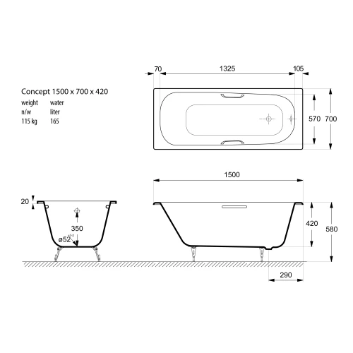 Чугунная ванна Vinsent Veron Concept 1500x700x420 с отверстиями для ручек, олицетворение классического стиля и практичности, выраженное в плавных линиях, с четким очертанием изгибов позволяющих оценить внутренний объем и ровную поверхность эмалевого покрытия ванны. Классическая форма чугунной ванны Vinsent Veron Concept 1500x700x420 в совокупности с продуманной эргономикой не только обеспечит максимальный комфорт при ежедневном использовании, но и станет стильным дизайнерским решением для вашей ванной комнаты.