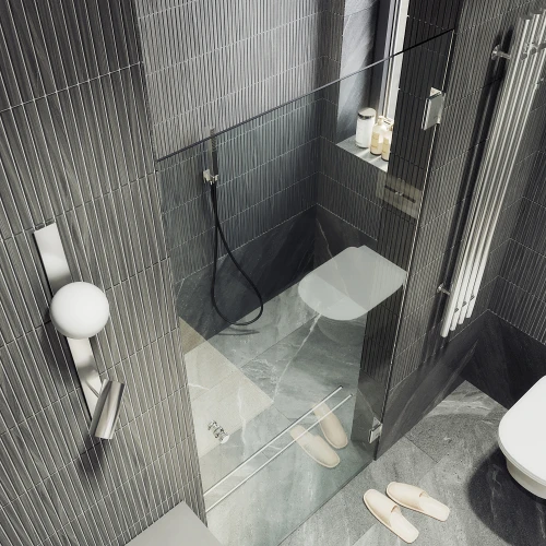 Стеклянная душевая дверь на петлях является стильным и функциональным элементом для ванной комнаты. Она обеспечивает мягкое и плавное открывание, что повышает комфорт использования. Изготовленная из прочного закаленного стекла дверь устойчива к царапинам и влаге, что гарантирует ее долговечность.