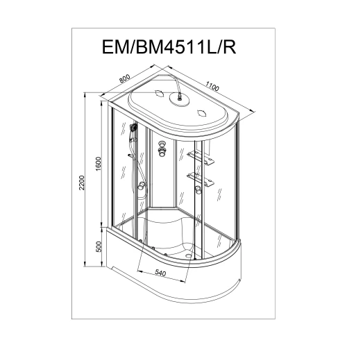 Душевая кабина Deto EM 4511 L LED с led подсветкой 110x80