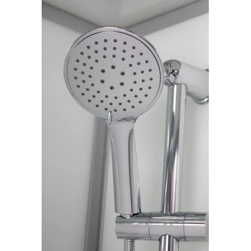 Открытая душевая кабина EST-100CK 100х100 испанского бренда Esbano позволит рационально использовать пространство небольшой ванной комнаты. Это конструкция квадратной формы с раздвижными дверями на двойных роликах изготовлена из закаленного рифленного стекла толщиной 5 мм в матовом хромированном профиле и устанавливается на низкий акриловый поддон высотой 15 см. Кабина оснащена сифоном с гидрозатвором, который не пустит неприятные запахи наружу. Особый комфорт водным процедурам придадут зеркало и тропический душ.