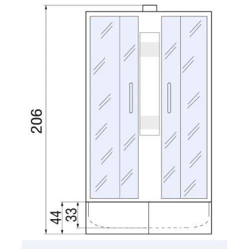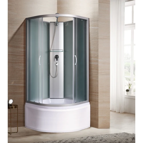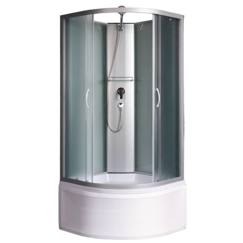 Комплектация: ручной душ, смеситель, полочка, ролики двойные регулируемые, сифон с гидрозатвором.