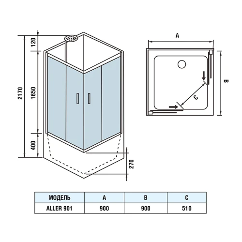 Душевая кабина Weltwasser WW500 Aller 901 90х90