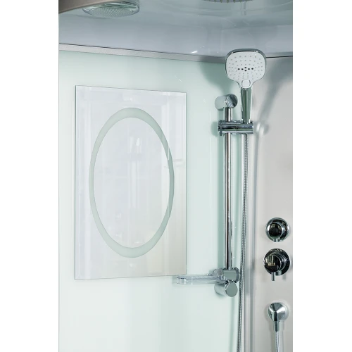 Принять душ с максимальным комфортом позволит кабина Weltwasser WW500 Halle 1002 100х100 в форме четверть круга. Поддон из 100% акрила высотой 45 см. Кабина оснащена тропическим душем из нержавеющей стали S304, с системой легкой очистки Easy Clean, ручной душ с усиленным шлангом с функцией вращения на 360° и регулировкой длины. Максимальную стыковку дверей обеспечивают водонепроницаемые уплотнители. Для сборки модели не требуется использование герметика. Кабина оснащена полочками и зеркалом.