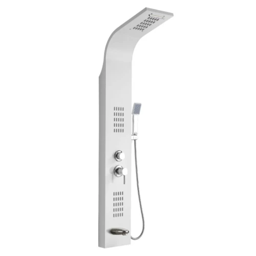 - Комплектация: душевая панель, душевая лейка, смеситель, шланг для душа, верхний душ, крепеж, инструкция