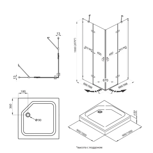 Душевое ограждение Triton Дельта-Хром 90х90 стекло прозрачное