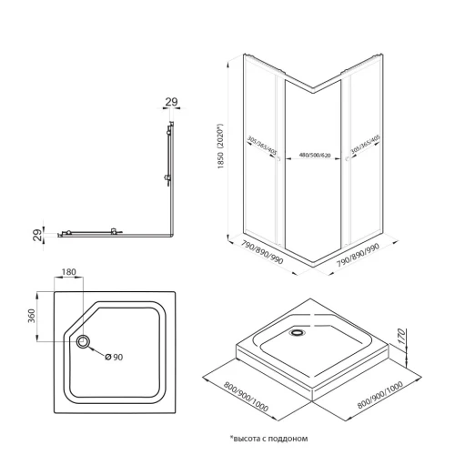Размеры900x900x1850