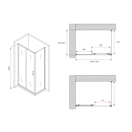 Раздвижная дверь при открывании создает широкий, удобный для входа проем. Душевой уголок предназначен для установки на пол или поддон.
