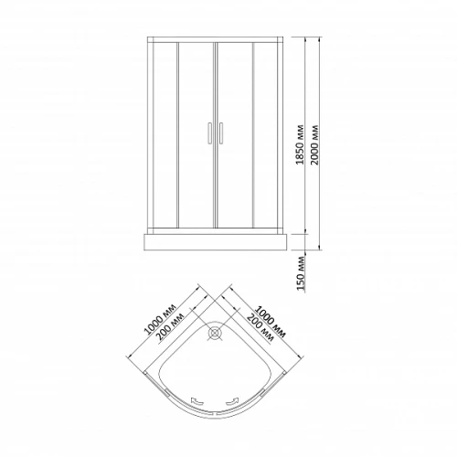- Низкий акриловый поддон на раме с сифоном