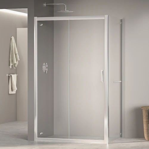 Высота душевого угла составляет 1950 мм, что позволяет использовать его для людей разного роста. Двойные регулируемые ролики обеспечивают плавное открытие и закрытие дверей, а также позволяют регулировать направление их движения.