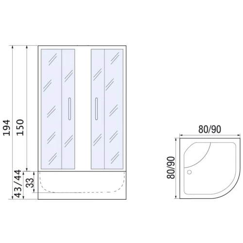 - Глубина поддона: 330 мм.