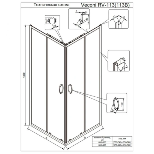 Душевой уголок Veconi Rovigo RV-113B 80х80