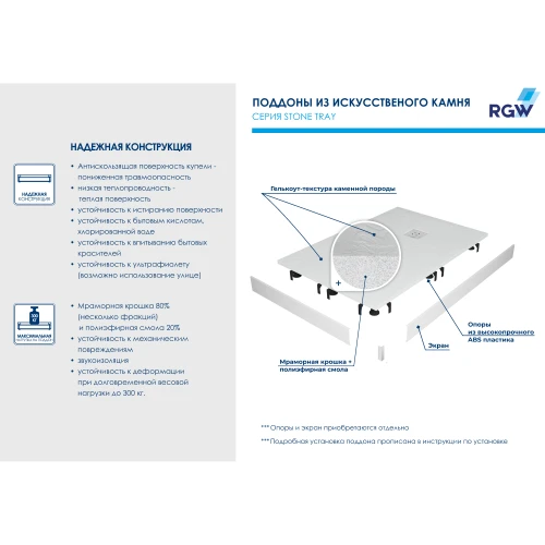 - Дополнительно к поддону приобретается сифон RGW S-010