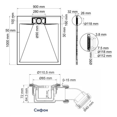 - Сифон в комплекте