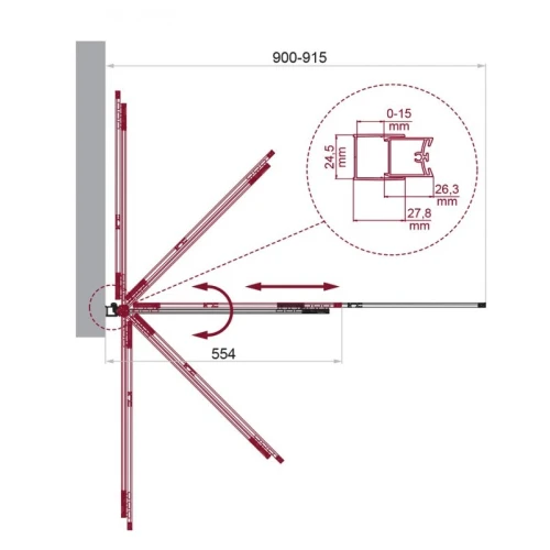 - Конструкция двери: поворотная цилиндрическая петля и выдвижная створка