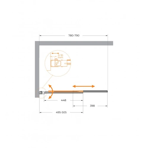 - Конструкция двери: поворотная цилиндрическая петля и выдвижная створка