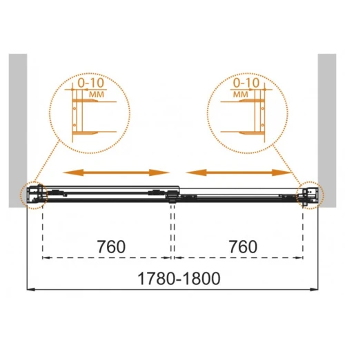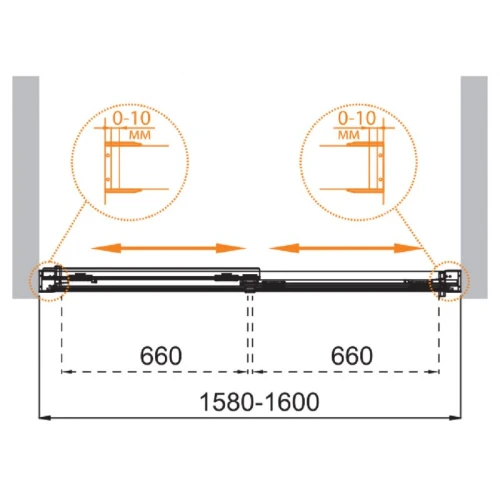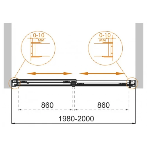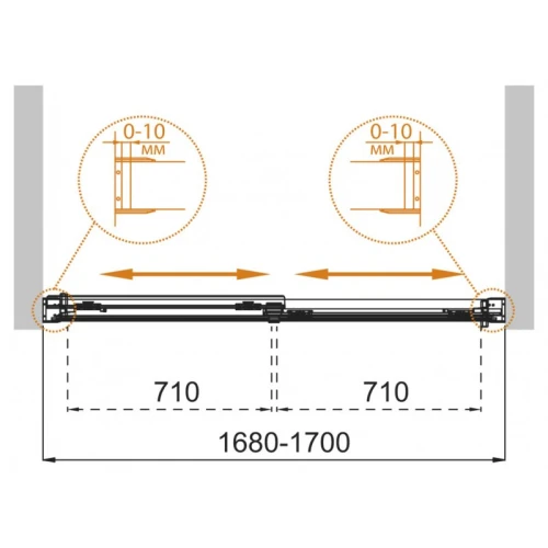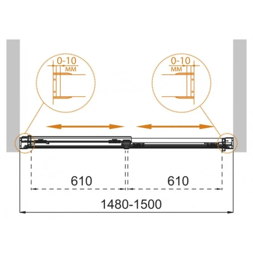 - Регулировка ширины: предусмотрена за счет боковых профилей
