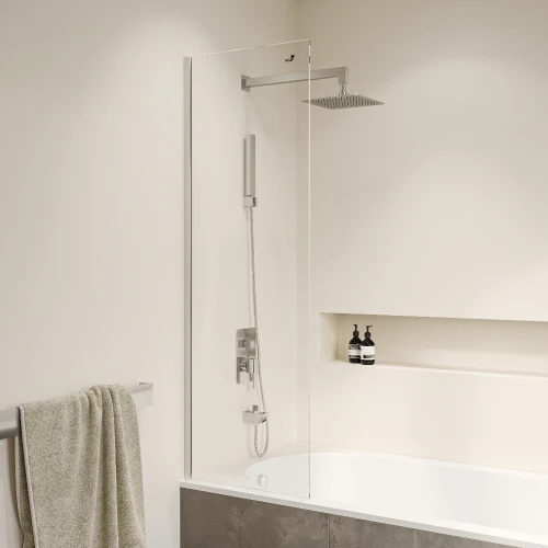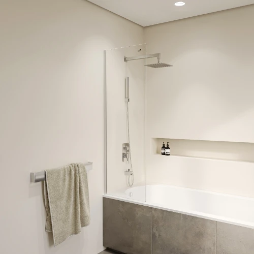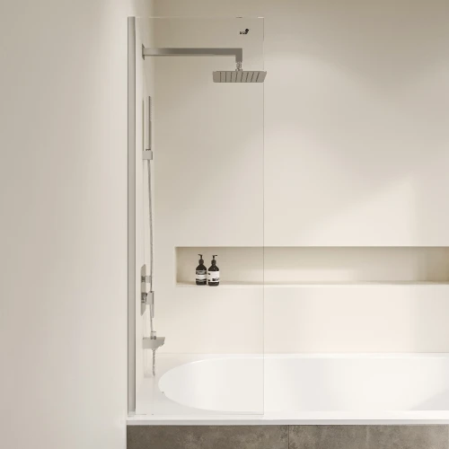 Толщина стекла 8 мм позволяет ей выдерживать значительные нагрузки и не повреждаться при ударах. Прозрачное стекло придает легкость и элегантность дизайну шторки, а хромированный профиль добавляет ей привлекательности и стильности, что позволяет ей гармонично вписываться в различные интерьеры.
