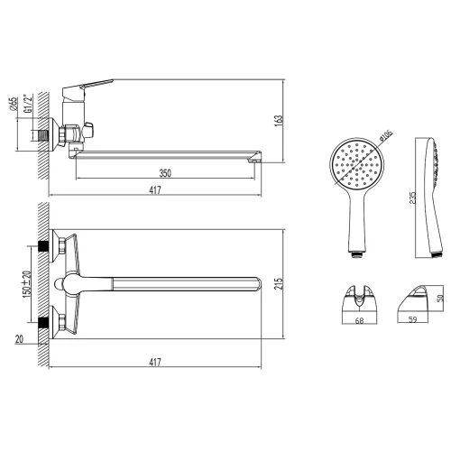 Смеситель Azario для ванны с душем AZ-HU245907