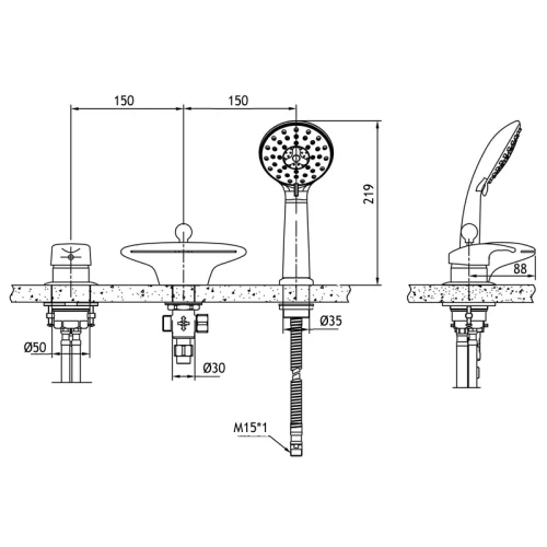 Смеситель Bravat Niagara на борт ванны F5140197CP-RUS