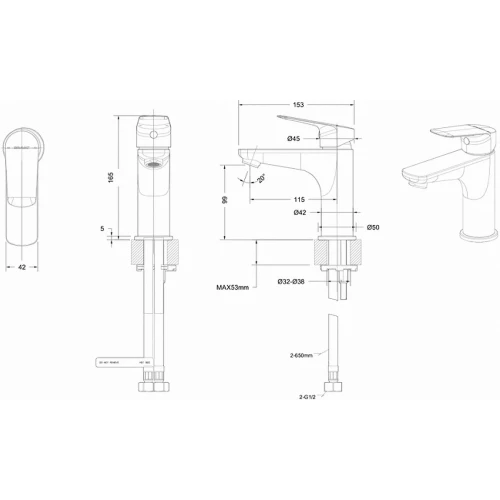 Смеситель Bravat Rhein для раковины F1429564BW-9-ENG