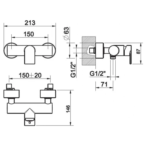 Смеситель Gessi Via Manzoni для душа 38631-149