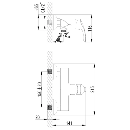 Аксессуары в комплекте: шланг 1,5 м, 1-функциональная лейка Ø106x235 мм, настенное фиксированное крепление