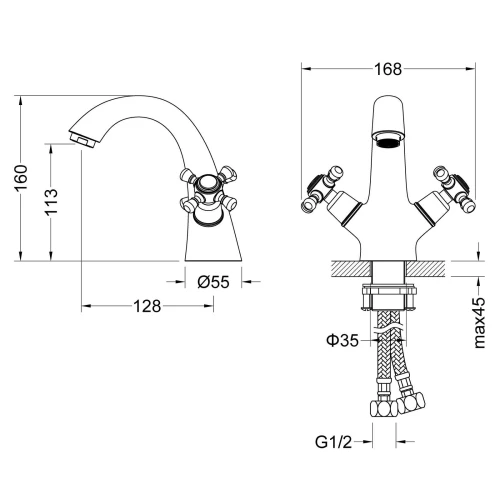 Смеситель Timo Nelson 1911 предназначен для установки на раковину. Смеситель выполнен в классическом стиле прекрасно впишется в интерьер ванной комнаты. Регулировка температуры и напора воды осуществляется раздельными рукоятками для горячей и холодной воды. Статичная конструкция смесителя, не требует ремонта ввиду отсутствия подвижного механизма.