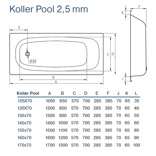 Стальная ванна Koller Pool 130x70 B30E1200E