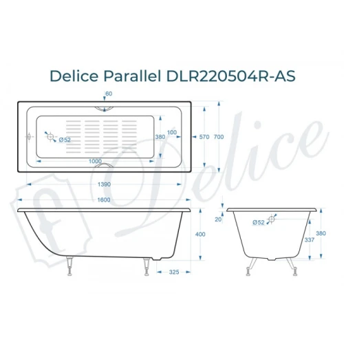 Delice Parallel 160х70 - стильная современная модель чугунной ванны прямоугольной формы с ручками. Ванна выполнена в размере 160х70 см с глубиной 38 см с хромированными эргономичными ручками. Модель идеально подойдет для небольших ванных комнат и впишется