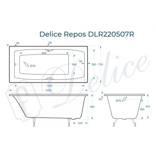 Ванна чугунная Delice Repos 150х70 с ручками DLR220507R