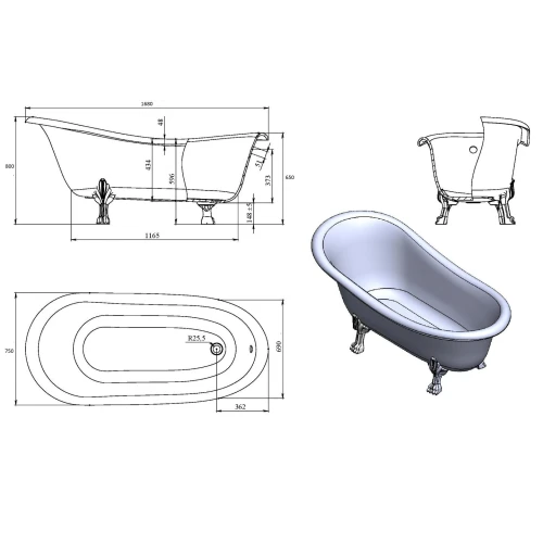 Ванна из литьевого мрамора Castone Даллас 168x75 ножки золото - имеет уникальную форму, которая располагает к отдыху и идеально повторяет контуры человеческого тела. Мраморная чаша как-будто специально создана для тех, кто ценит роскошь и комфорт. Овальная купель идеально впишется в классический интерьер ванной комнаты, это прямые и лаконичные линии, устойчивые и стильные «львинные» ножки. В зоне головы ванна расширяется, это сделано для того, чтобы верхней части тели пользователя было максимально комфортно. Объема в 210 литров вполне достаточно для того, чтобы полностью погрузиться в теплую воду.